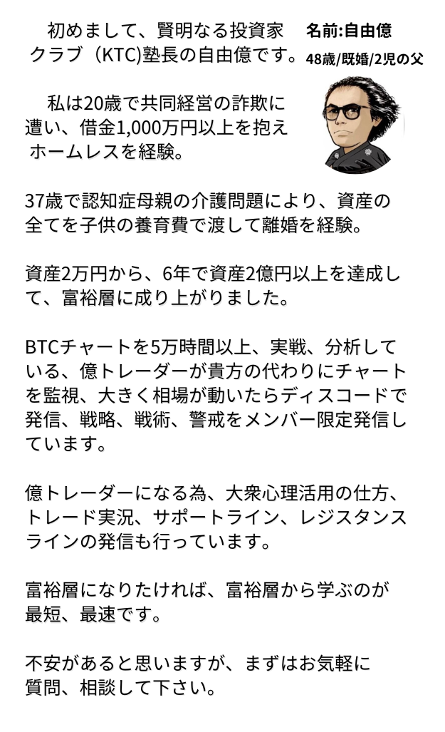 自由億(おっくん)は【お金の学校】【投資の学校】運営で多忙の為、自由億への個別DM(Discord、Twitter、LINE )は原則禁止としています。